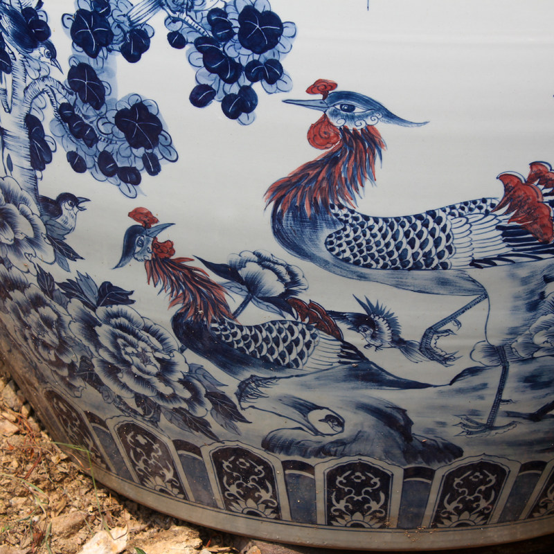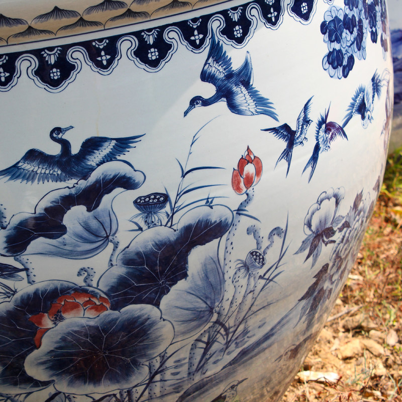 Jingdezhen ceramic fish tank blue and white hand-painted bird Chaofeng villa courtyard hotel water tank lotus water lily raising goldfish