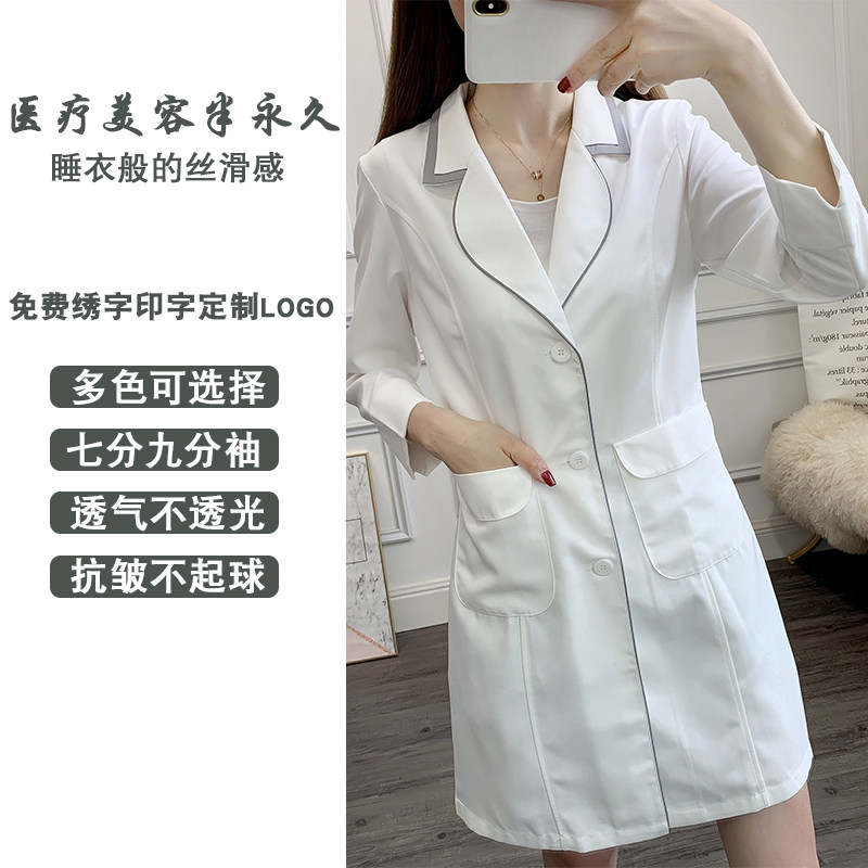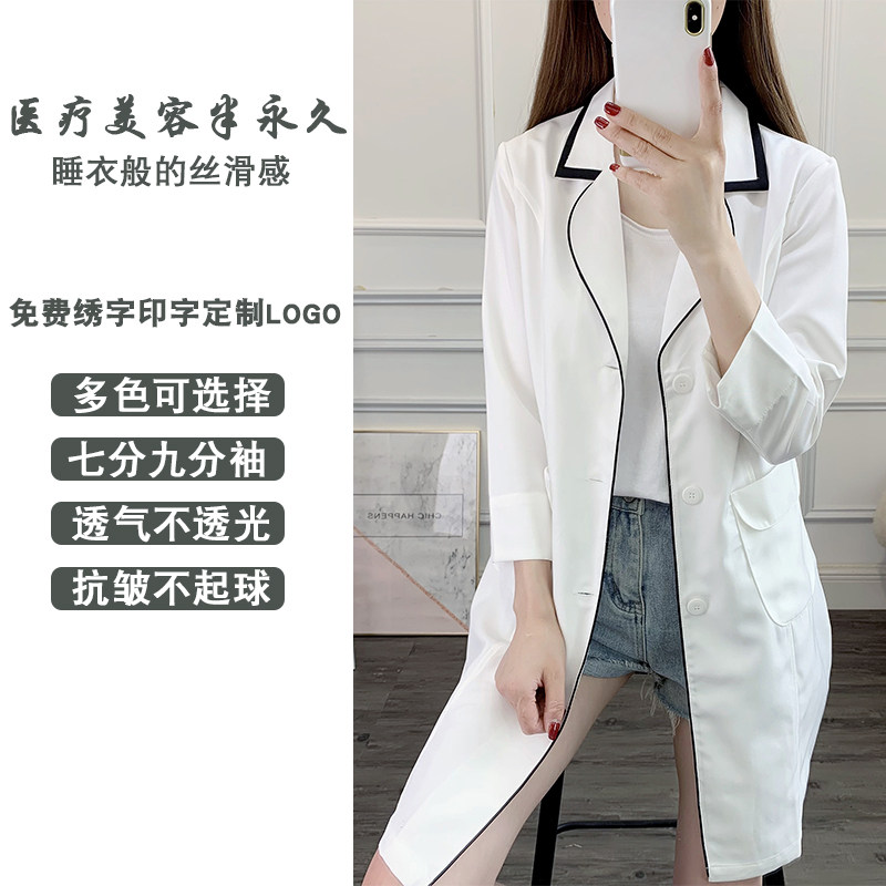 Beauty salon workwear Female Medical Beauty Division White Large Vest High-end Skin Management Textured embroidered thin style Customized Mid Sleeve Summer