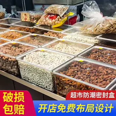 Supermarket shelf sealed box bulk nuts dry goods display bucket food snacks whole grain transparent display plastic