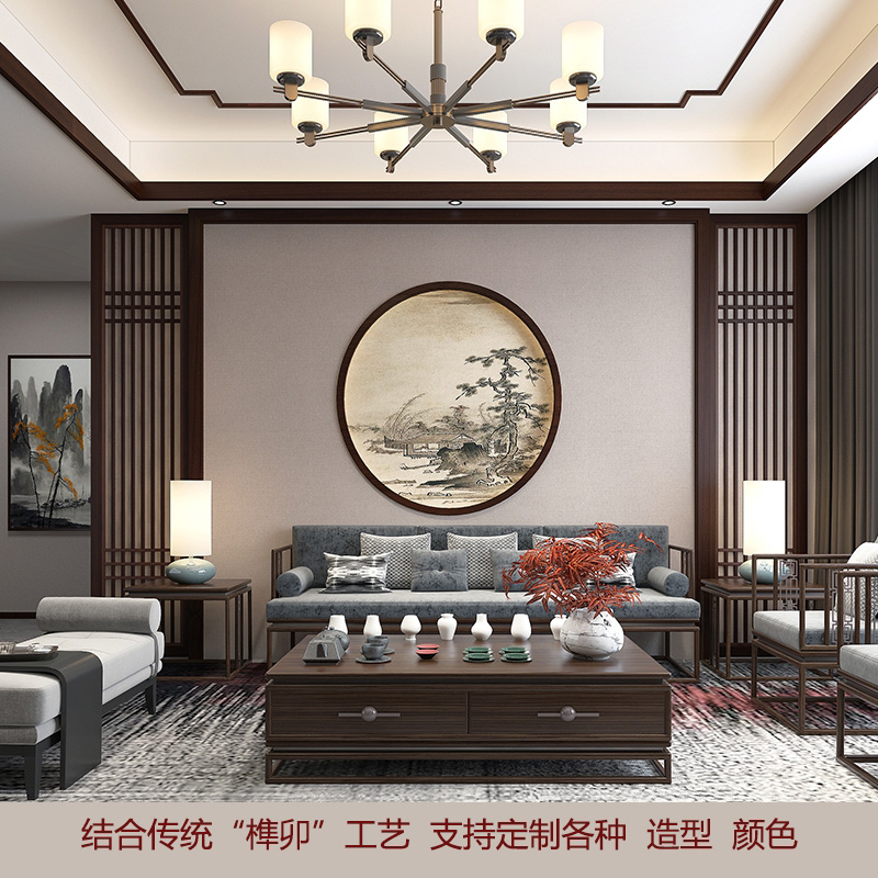 Dongyang wood carving new Chinese style of lace background wall drawing room ceiling solid wood pattern screen cut antique doors and windows
