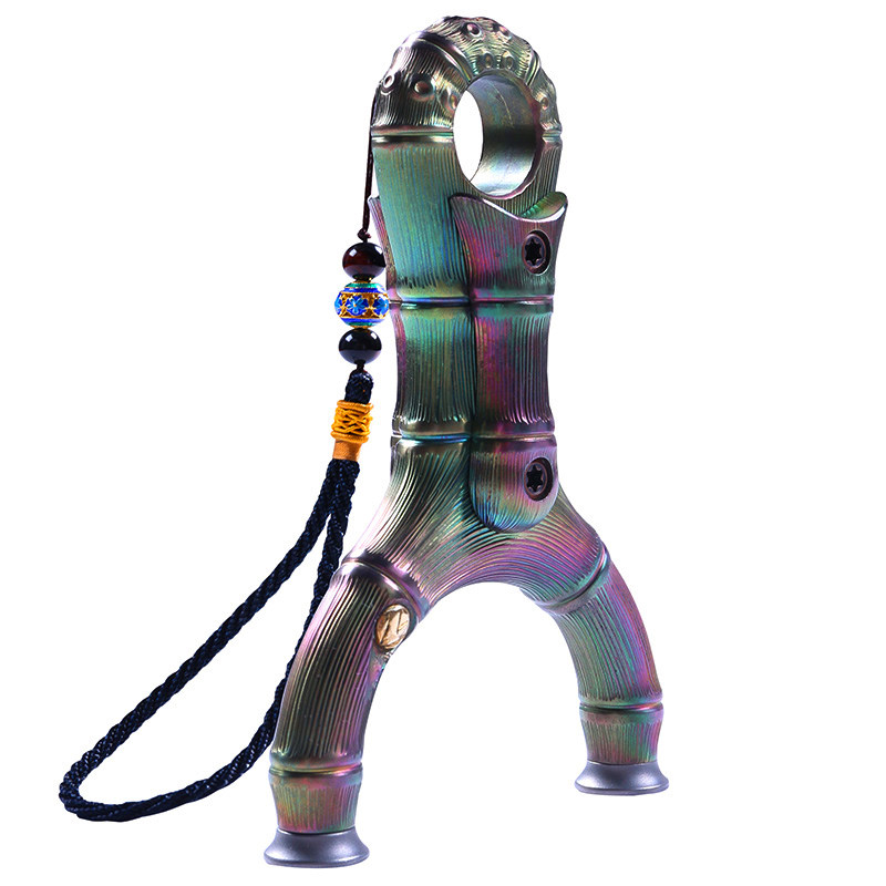 Colorful bamboo nodes, pure handmade, all titanium alloy TC21 flat leather Flying Tiger slingshot, precision outdoor competitive slingshot professional