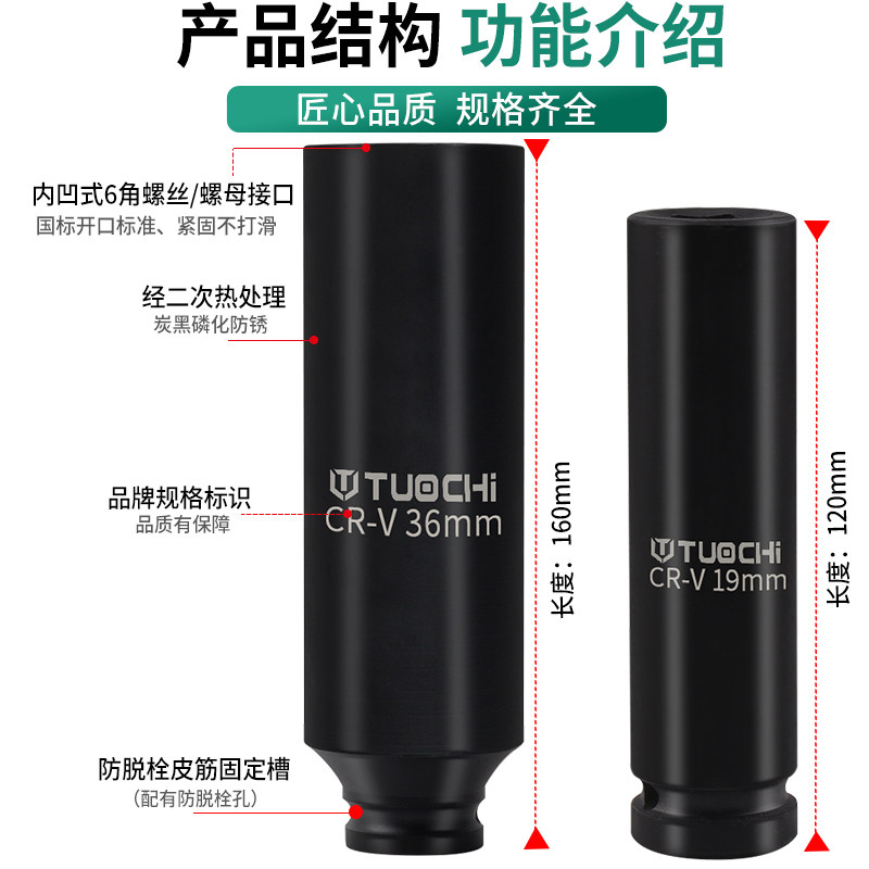 Small wind gun hexagonal extended thickened sleeve electric wrench special sleeve head 12cm16cm extended sleeve