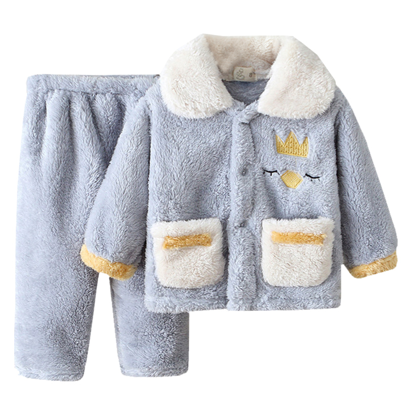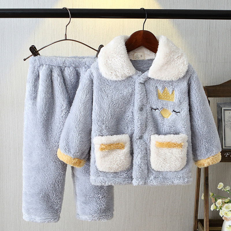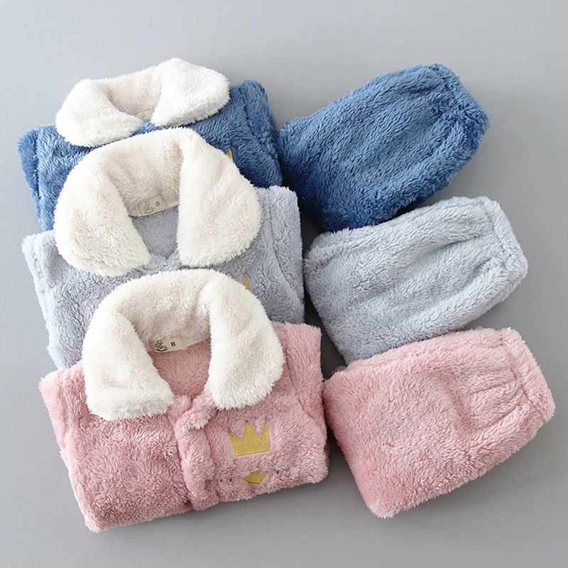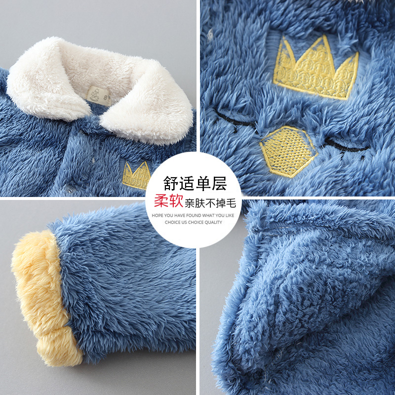 Boys pajamas autumn and winter flannel children's coral velvet suit boys thickening children's winter baby home clothes