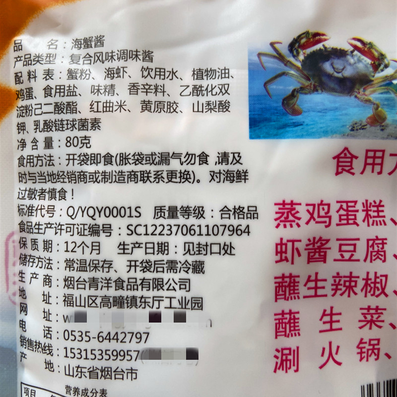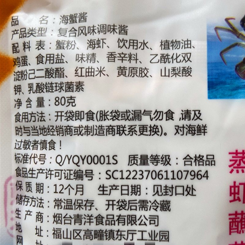 Crab Pink Sea Shrimp Drinking Water Vegetable Oil Eggs Edible Salt MSG Spice, etc.