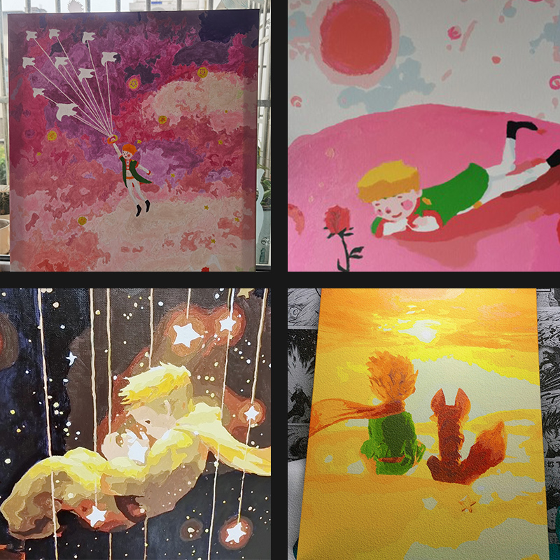 First Art Pie Little Prince Diy Digital Oil Painting Healing Hanging Paintings Handmade Gifts Cartoon Living-room Decoration Painting