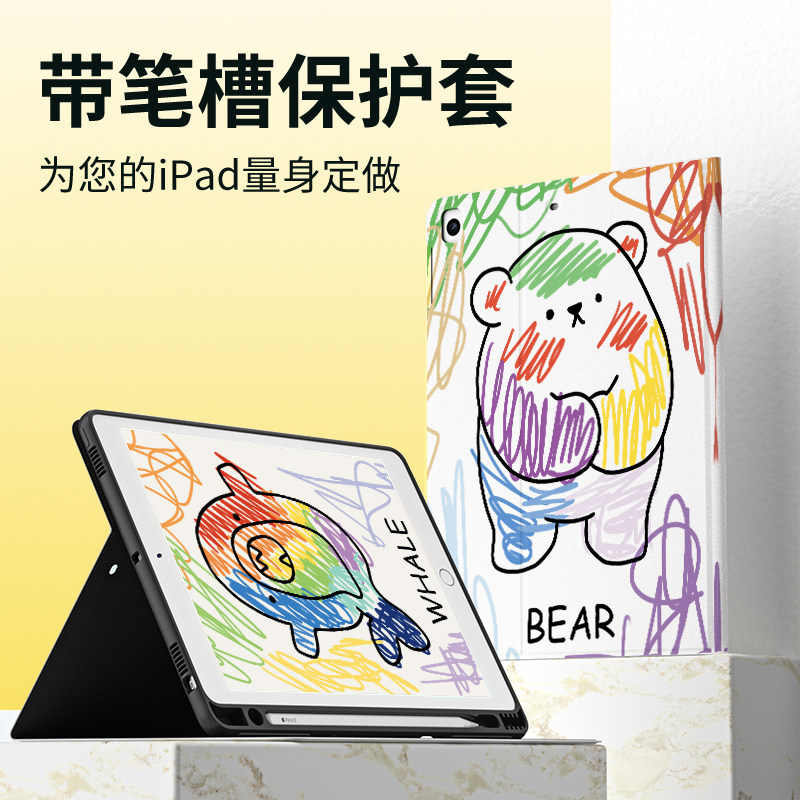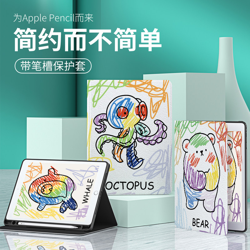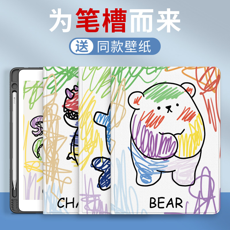 ipad9 protection shell 2021 new belt pen slot iPadPro cover full bag anti-fall 12 9 inches Graffiti dinosaur cartoon student 11 inch air4 silk tattoapple mn5 tablet