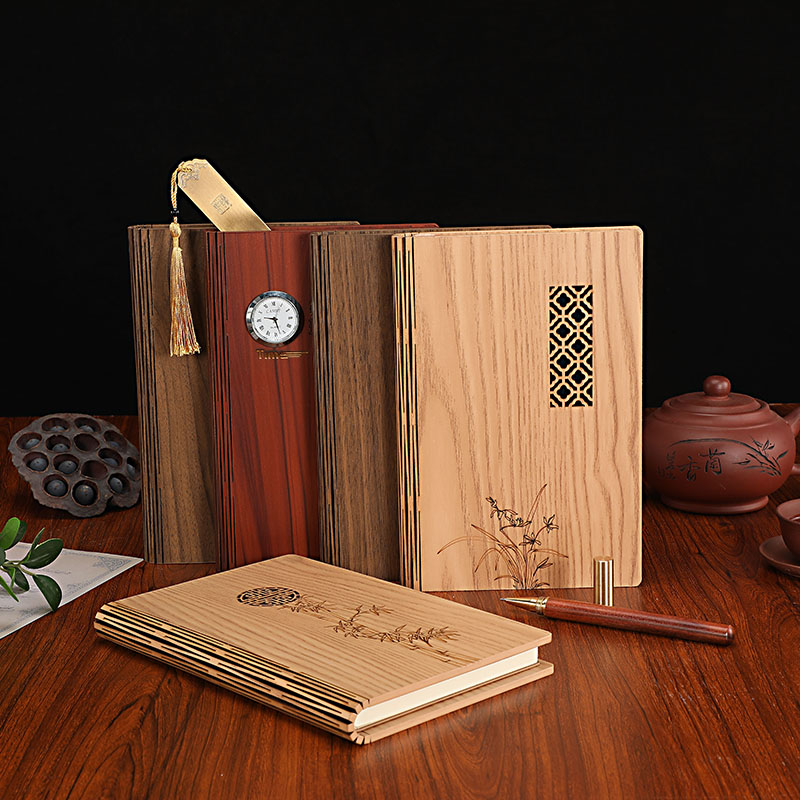 Classical China Wind Woody Notebook Benson Business Upscale Gift Box Kit Assembly Gift Memorabilia Day Notebooks Retro Office Notepad Bookmark Notebook Custom Imprint Logo lettering