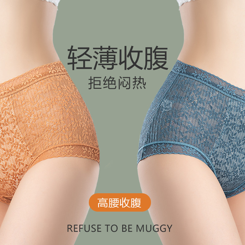 High-waisted panties, women's lace, abdomen, buttocks, pure cotton, antibacterial, new 2021 popular fashion, sexy and comfortable