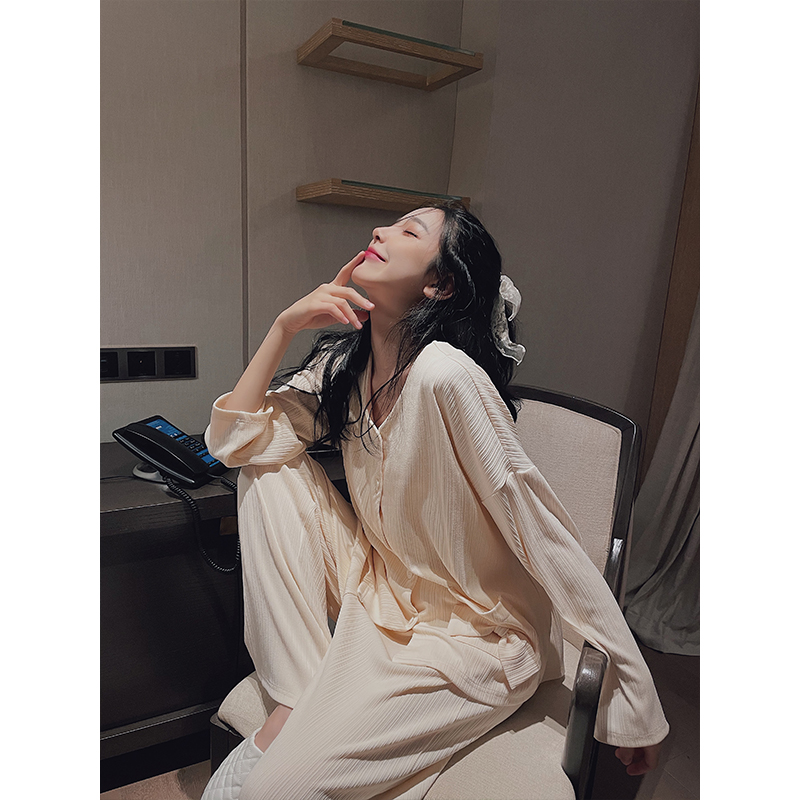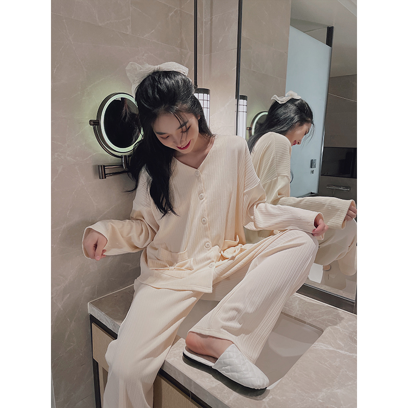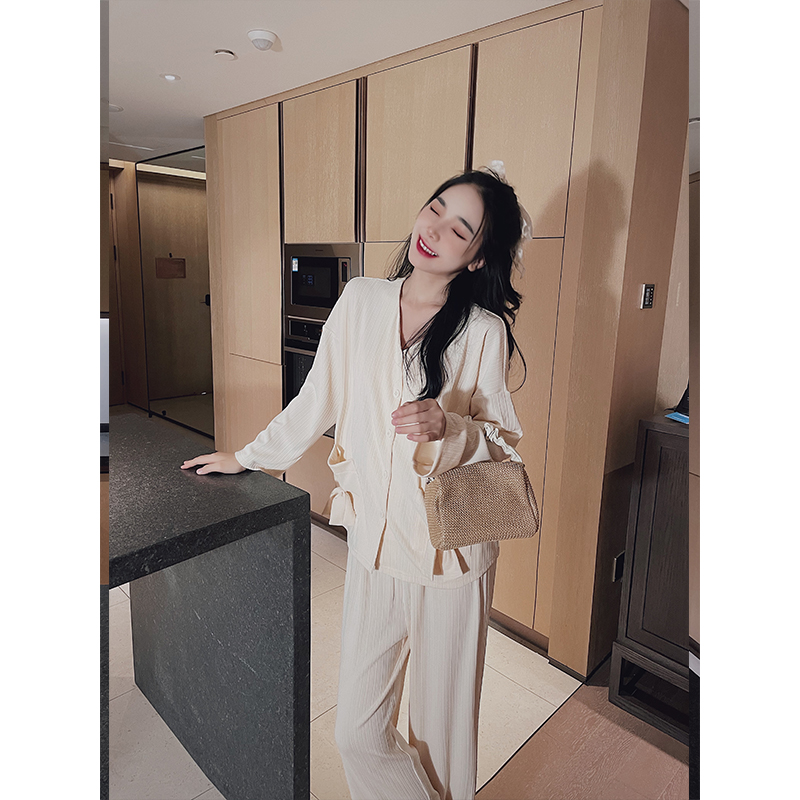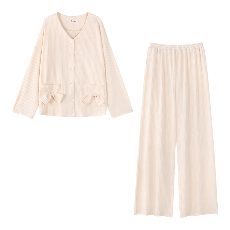 Home Deer Deer Sleepwear Woman Spring Autumn V Collar Butterfly Knot Two Sets Pocket Design 2021 New Outwear Home Clothing
