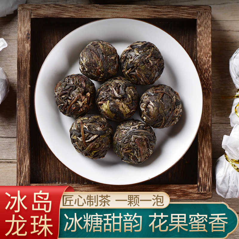 Pu'er raw tea Iceland Pu'er tea ancient tree Linicang Puter class dragon bead tea grain with mini tuteo tea canned