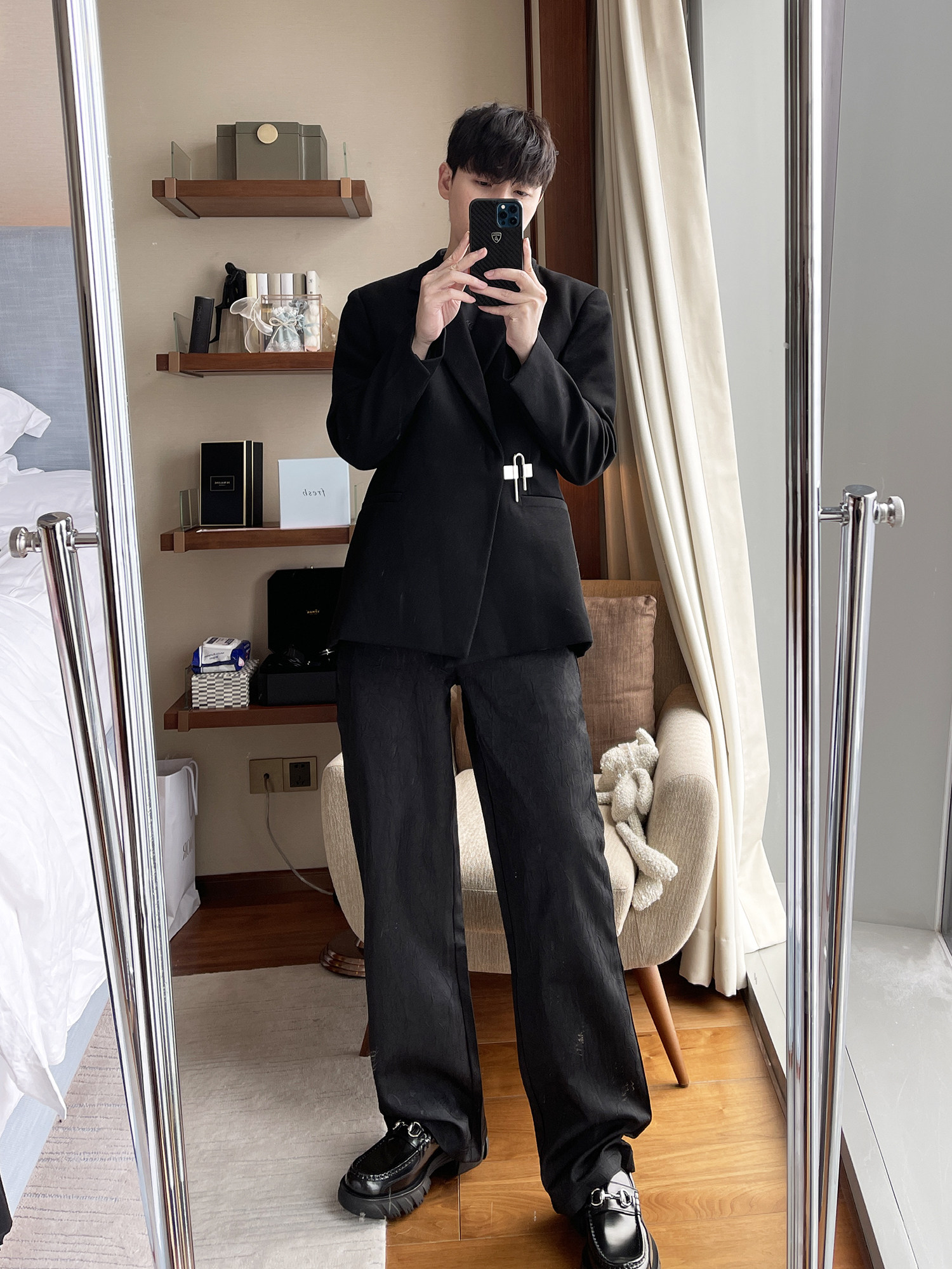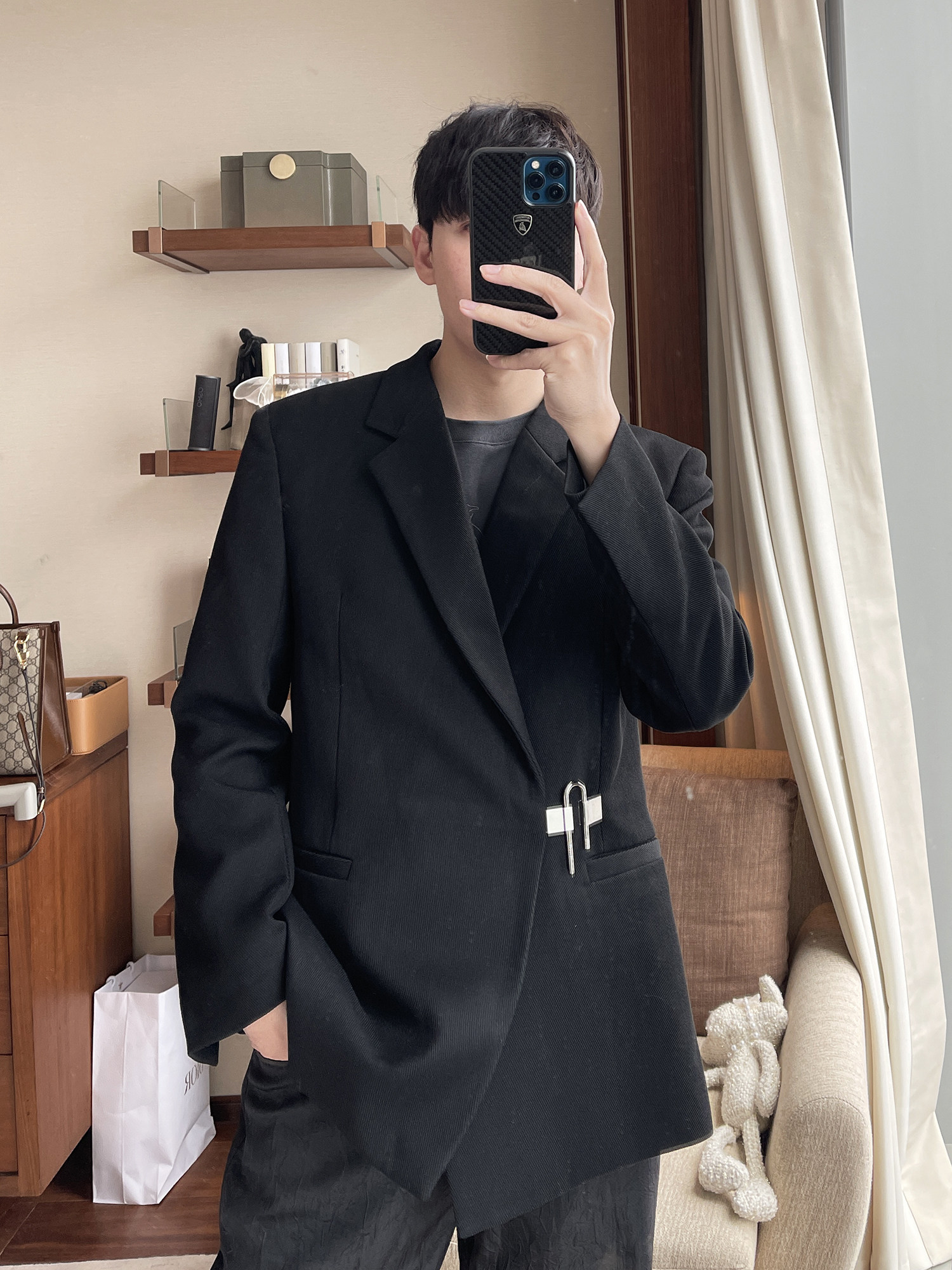 CCJE Men's Yuppie Handsome Casual Suit Design Sensation Little Korean Version Trendy Street Fried Street Black Advanced Sensation West Suit Jacket