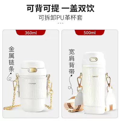 (Double drink lid) (Pearl White 500ml) leather grain cup sleeve wide shoulder baby bag (double drink cover) (OBO Stone black 500ml) leather grain cup cover wide shoulder baby bag (double drink cover) (pearlescent