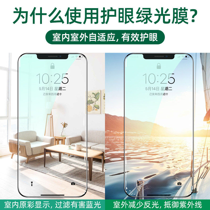 The new iPhone 14ProMax is applicable to Apple 13 green eye-protected film tempered film 12pro mobile phone full screen XR cover anti-blue-ray laminate film full-pack edge 11 anti-fall 7 8pl