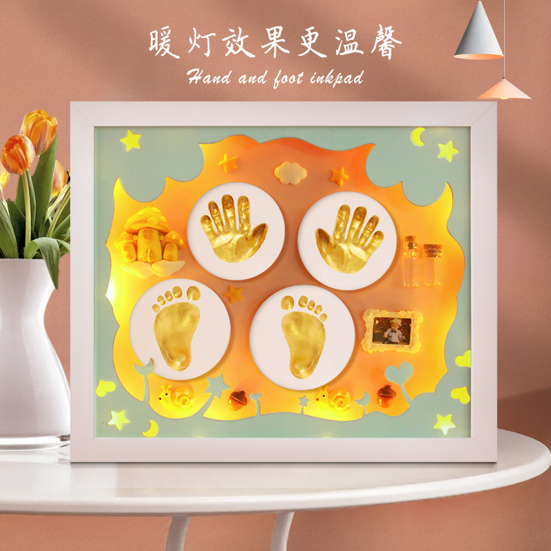 Baby hand and foot ink pad fetal hair souvenir photo frame newborn baby footprint handprint hundred days old gift long