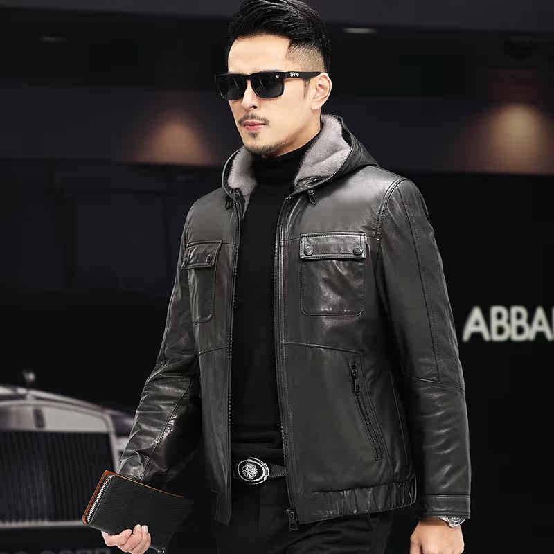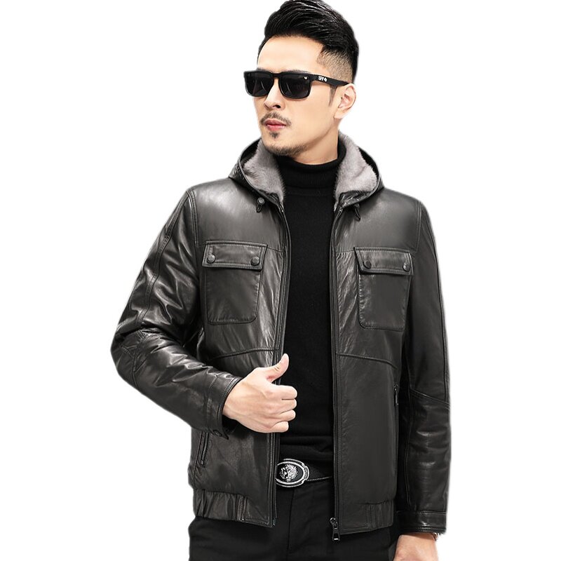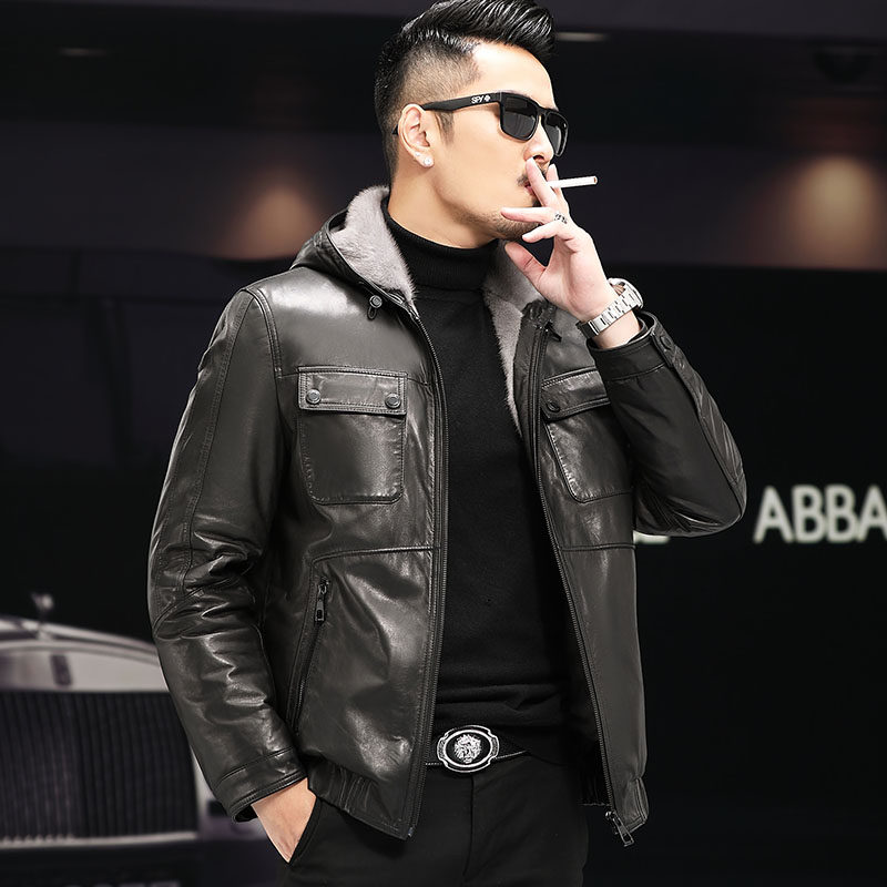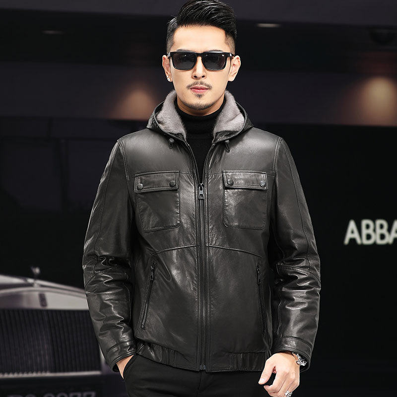 Water Mink Liner Genuine Leather Leather Clothing Men's Lianhood Cow Leather Jacket Henning Leather Hair Integrated Winter Minke Leather Jacket