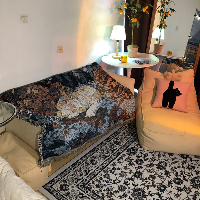 GALA pastoral style illustration sofa blanket towel ins wind decorative blanket bed blanket wall decoration tapestry tapestry