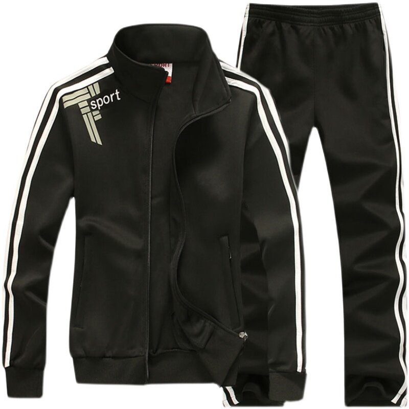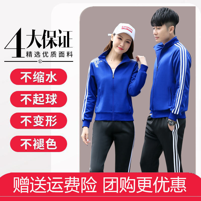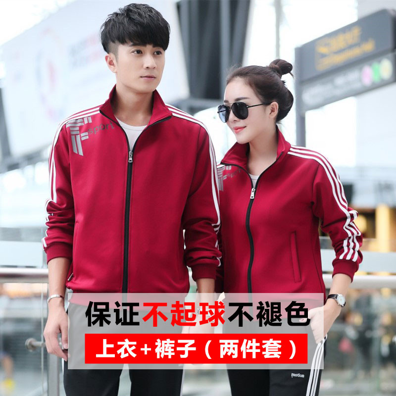 Couple sports suit men and women spring and autumn casual two-piece set three-bar cardigan stand-up collar walking group clothing printing