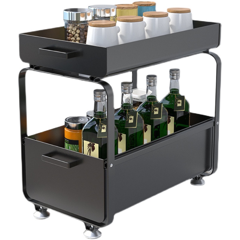 Multi-function kitchen condenser frame floor push and pull drawing storage cabinet double-deck collection frame