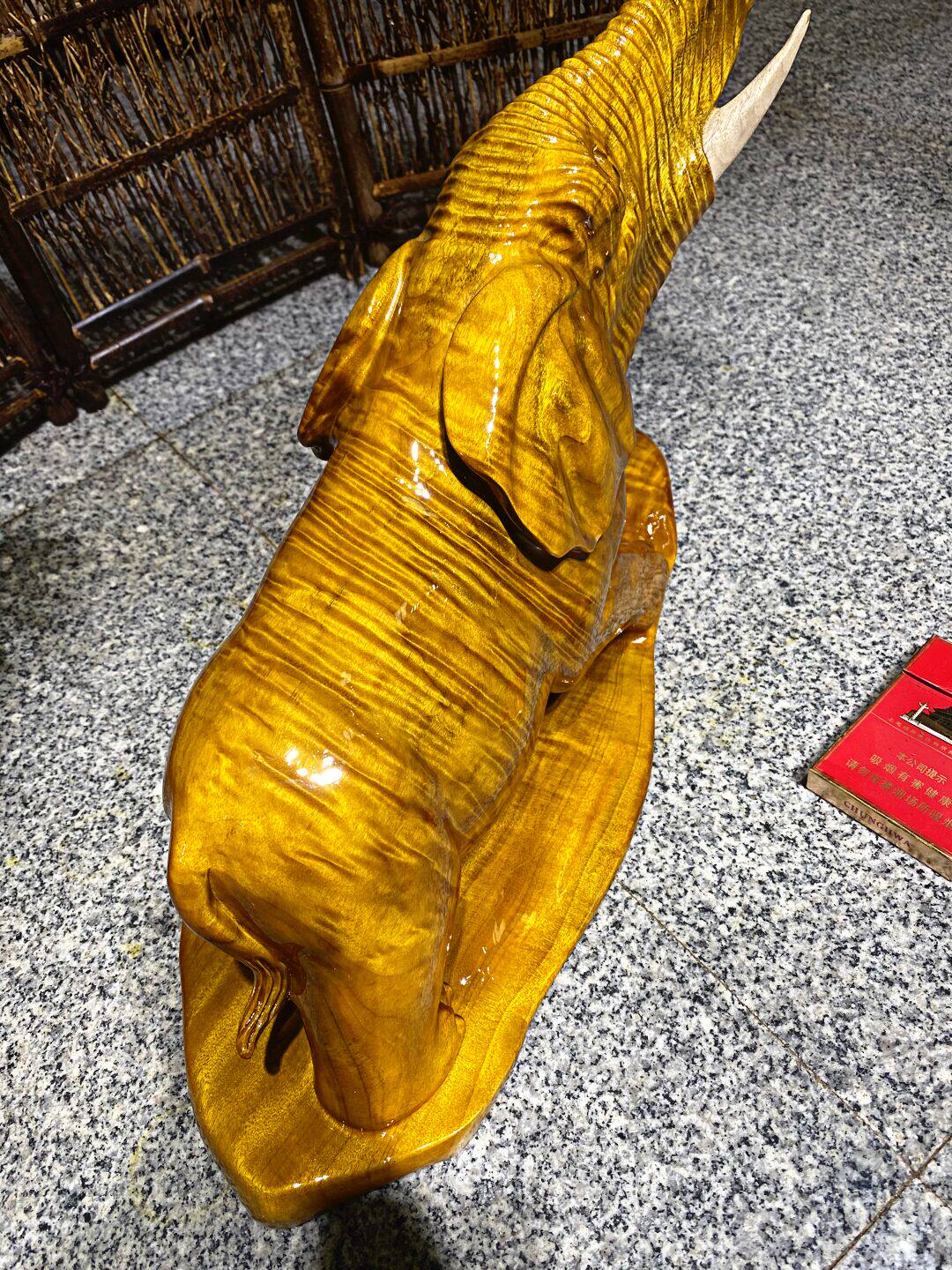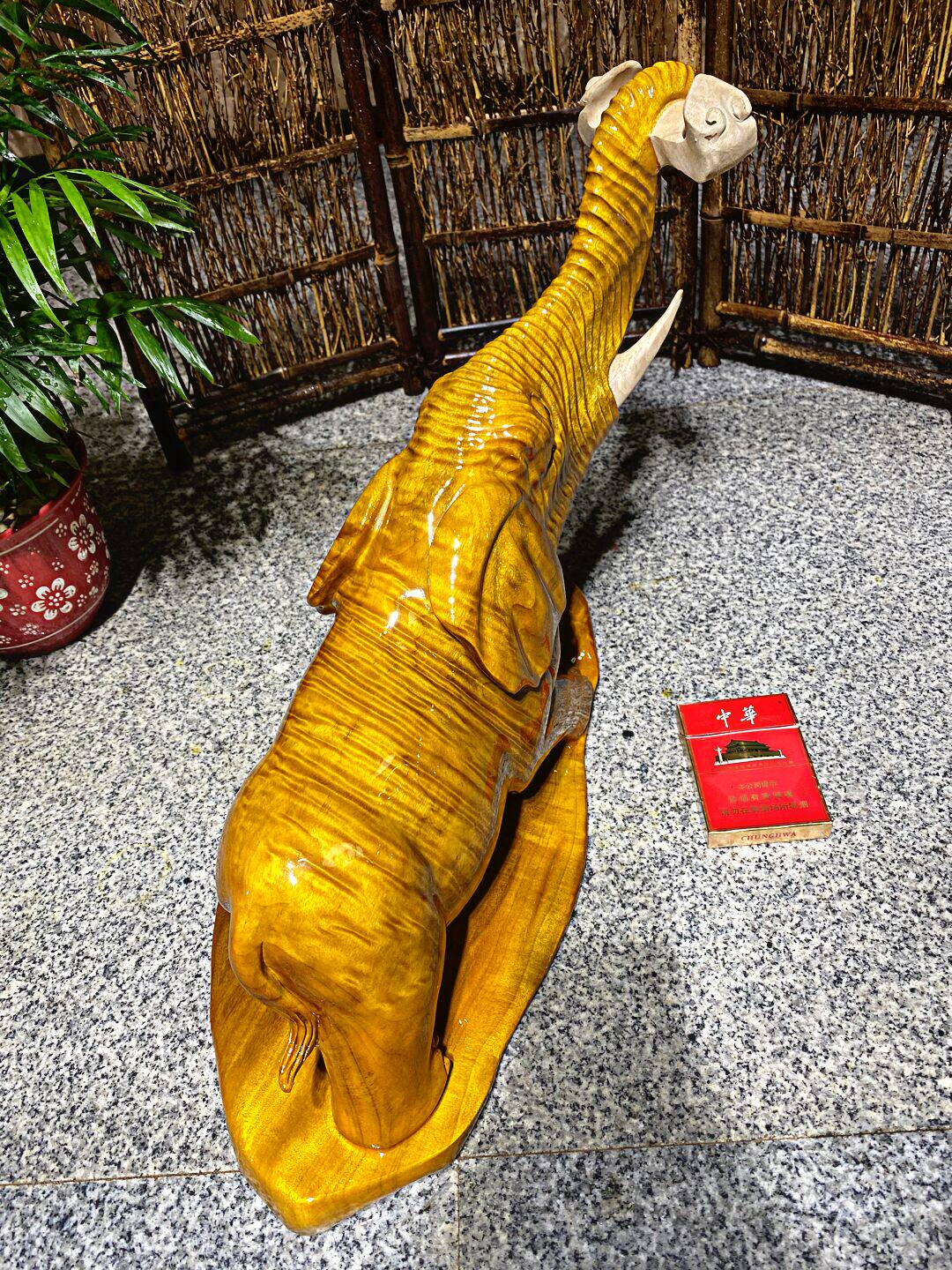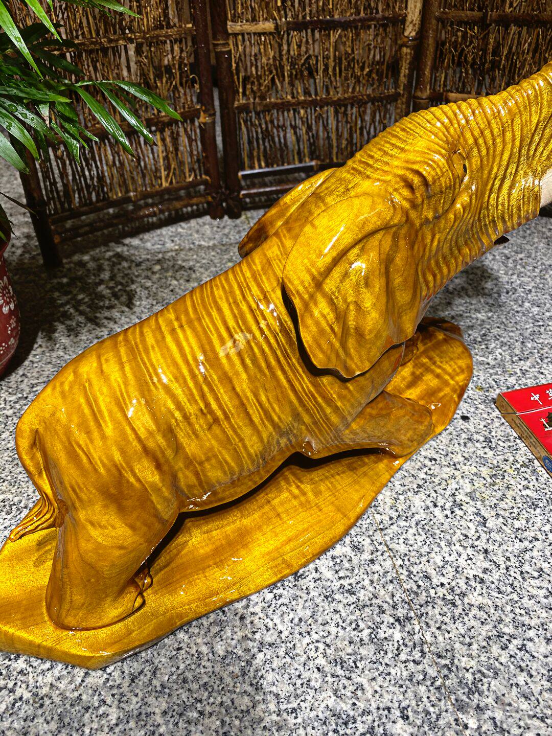 Golden Silk Nangmu Carved U Wood Auspicious Ruyi Elephant Bull Shady Wood Pendulum root sculptures Guanyin Millver Animals