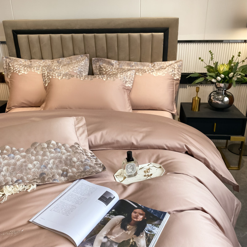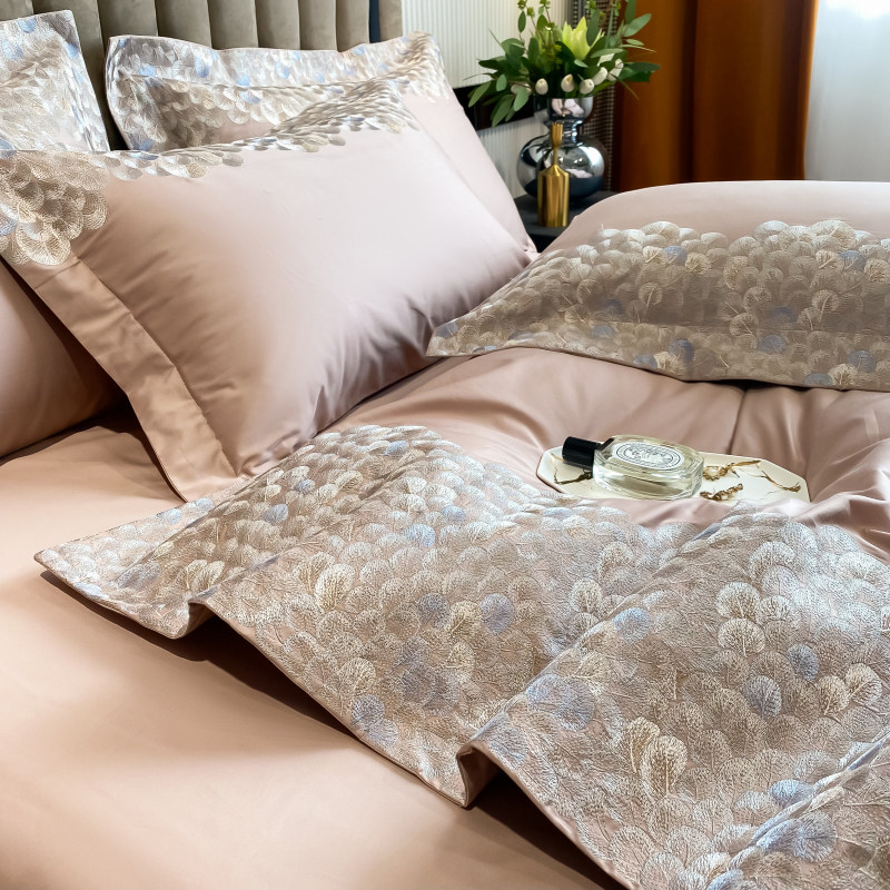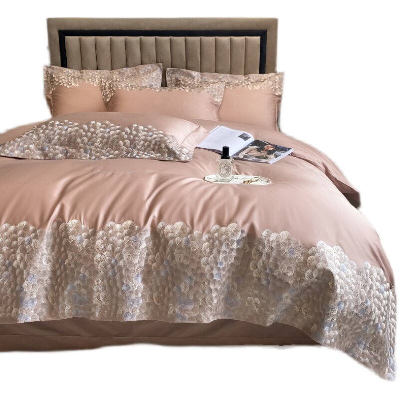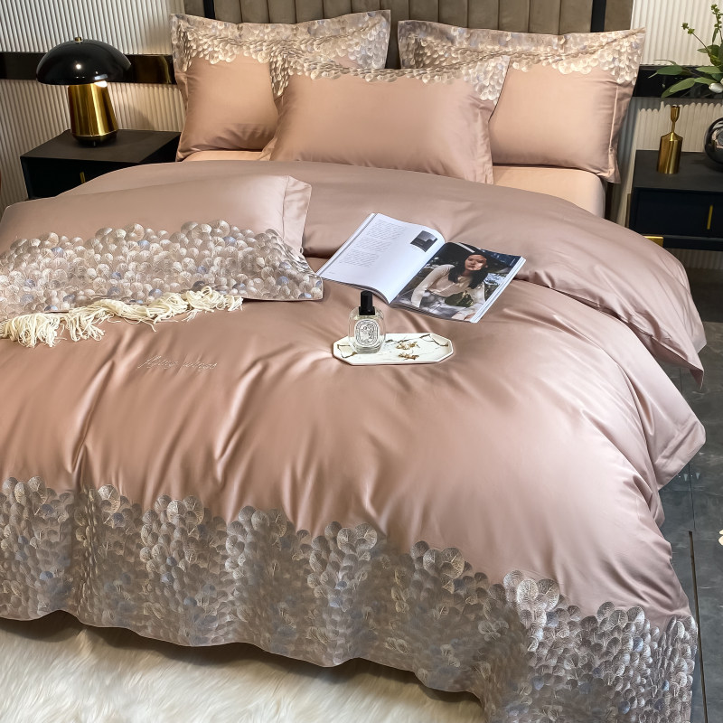 High end 100 Horsecotton Four Sets Light Lavish Simplicity full cotton pure cotton quilt cover Embroidery Pure color Upper Supplies-Taobao
