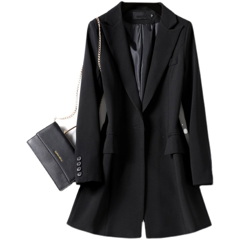 Medium long version black suit jacket woman long sleeve single row button 2022 new fall exploits Western suit 100 lap blouses woman