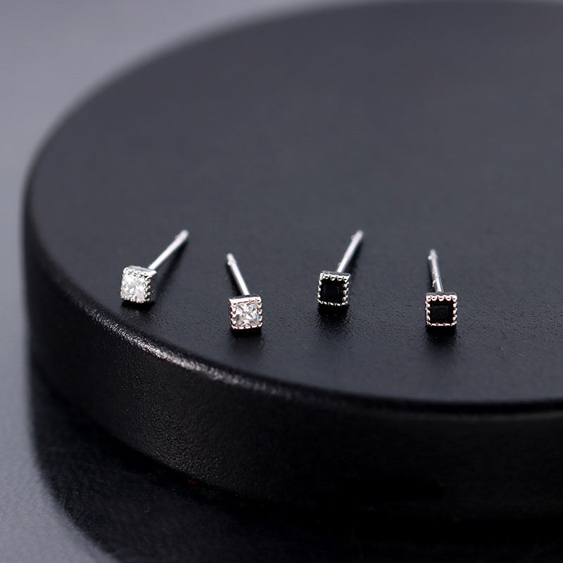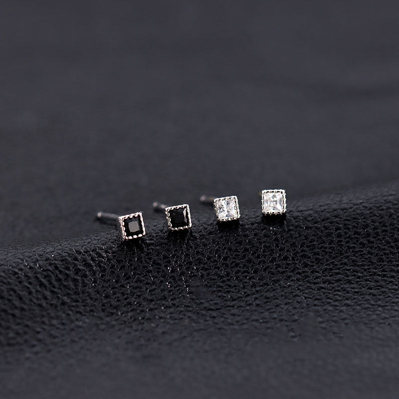 A pair of ear needles (white) A pair of ear needles (black) A pair of ear needles (white small rhinestones) Three ear needles (white and black small rhinestones)