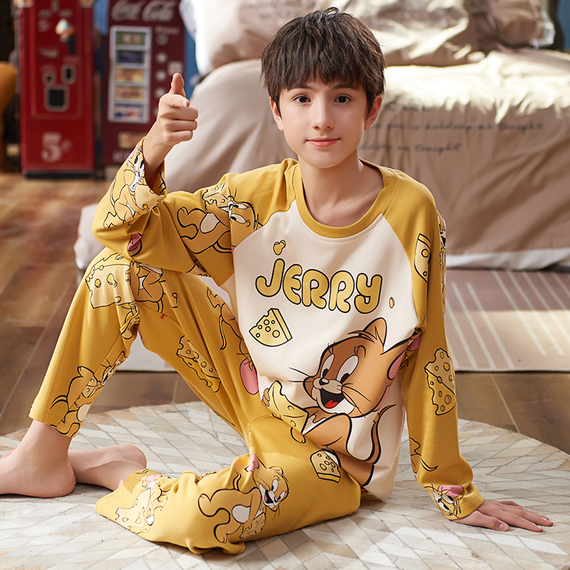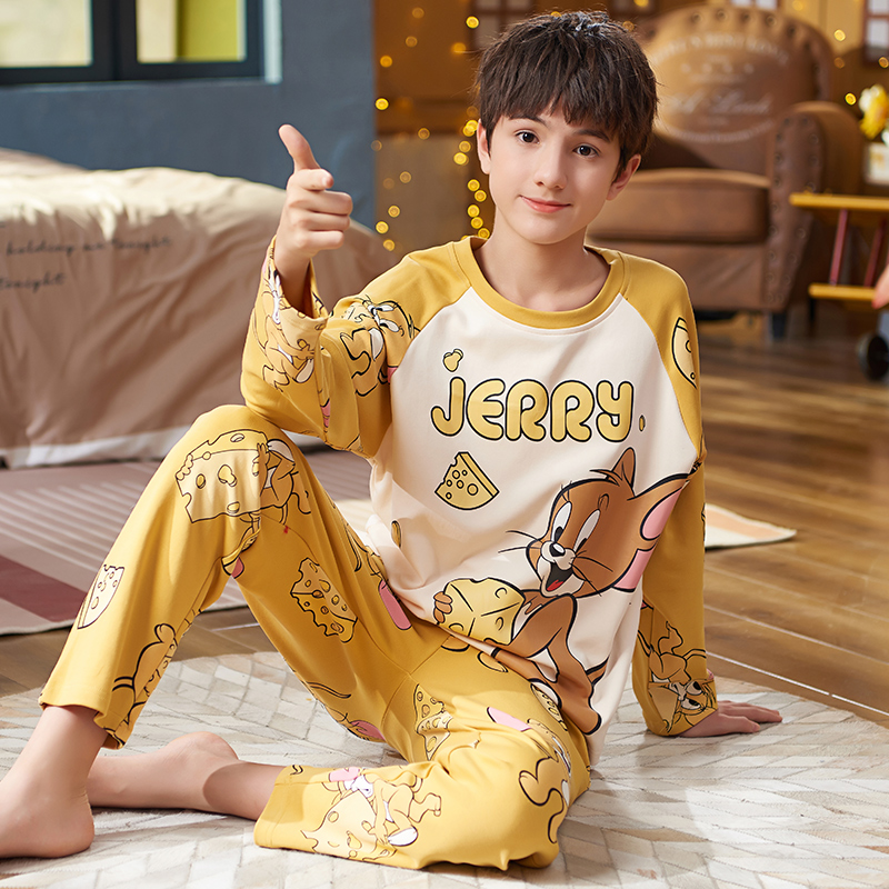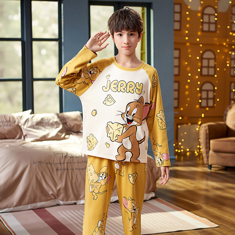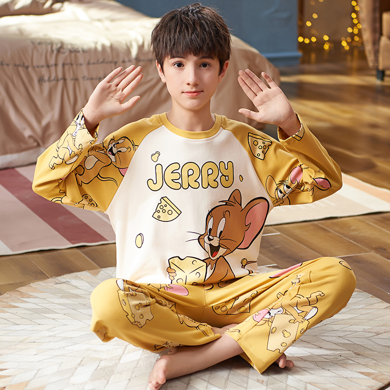 Children's pajamas boys spring and autumn long-sleeved cotton suits 12 years old middle-aged children's little boys thin cartoon home clothes