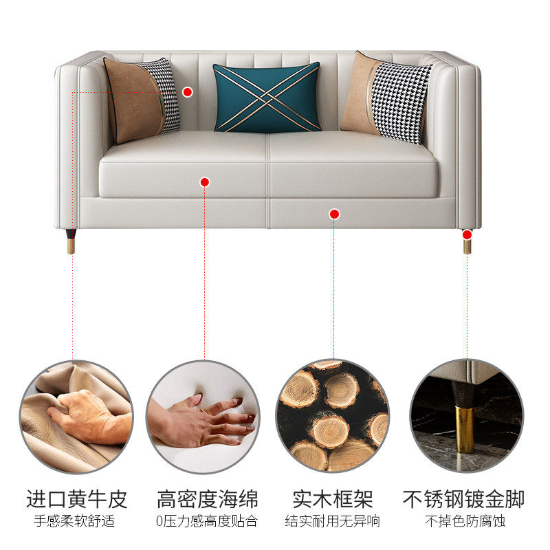 Nordic light luxury leather sofa simple small apartment living room leather sofa three-person corner 123 combined small sofa