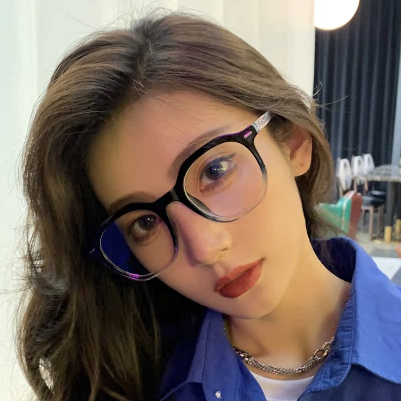 2021 new gray frame anti-blue light glasses female ins wind anti-radiation eye protection big face thin with myopia male