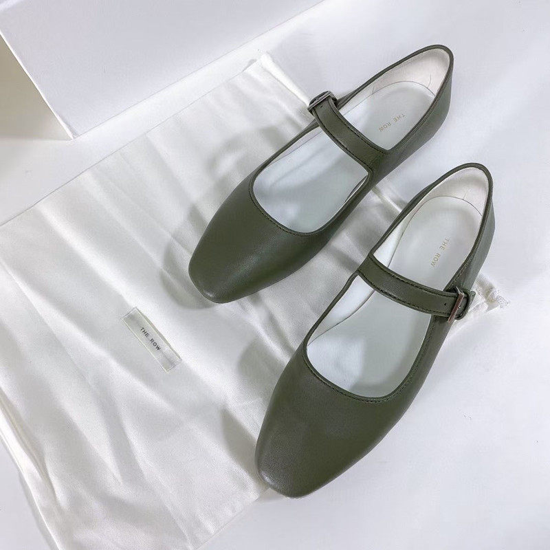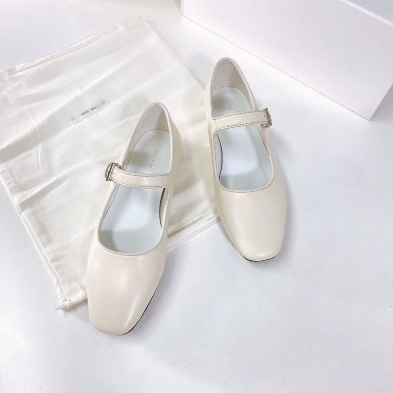 Ruthless goods The*Row full leather Mary Jane shoes retro square toe soft bottom women's shoes one word buckle flat shoes women