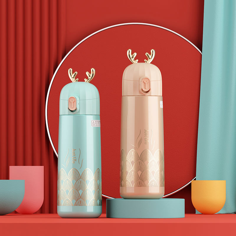 justlife cute MengMeng deer Jiqing series thermos cup high-value female water Cup Chinese style light luxury thermos cup