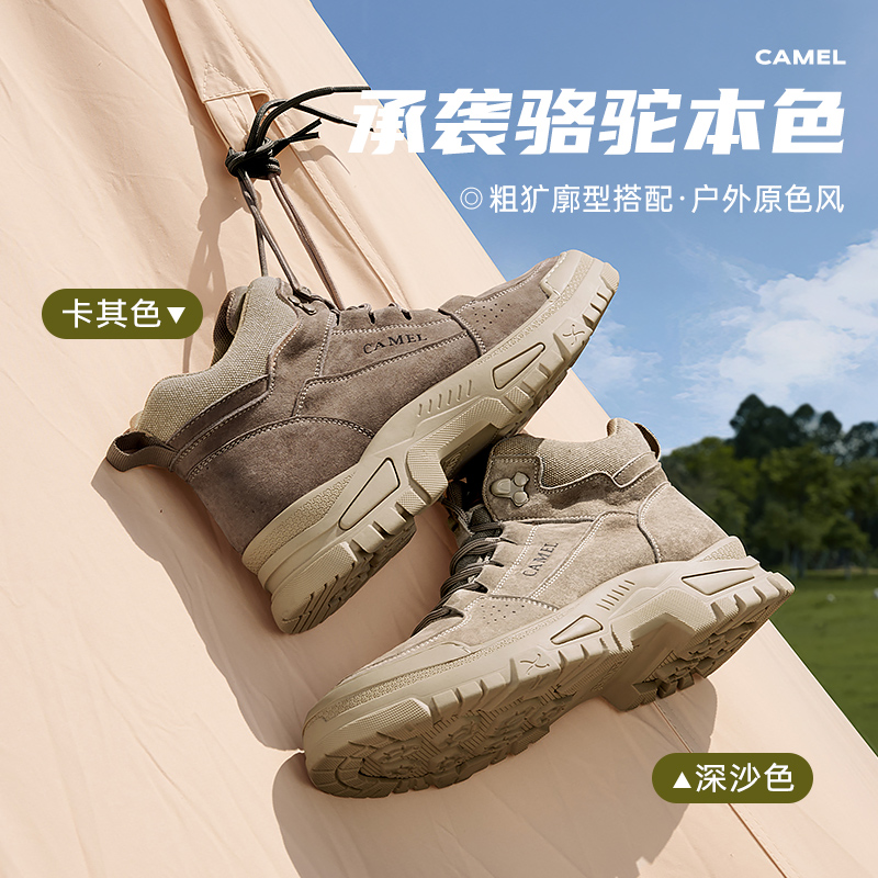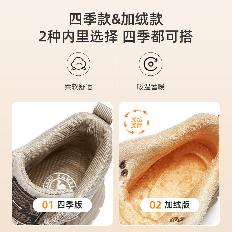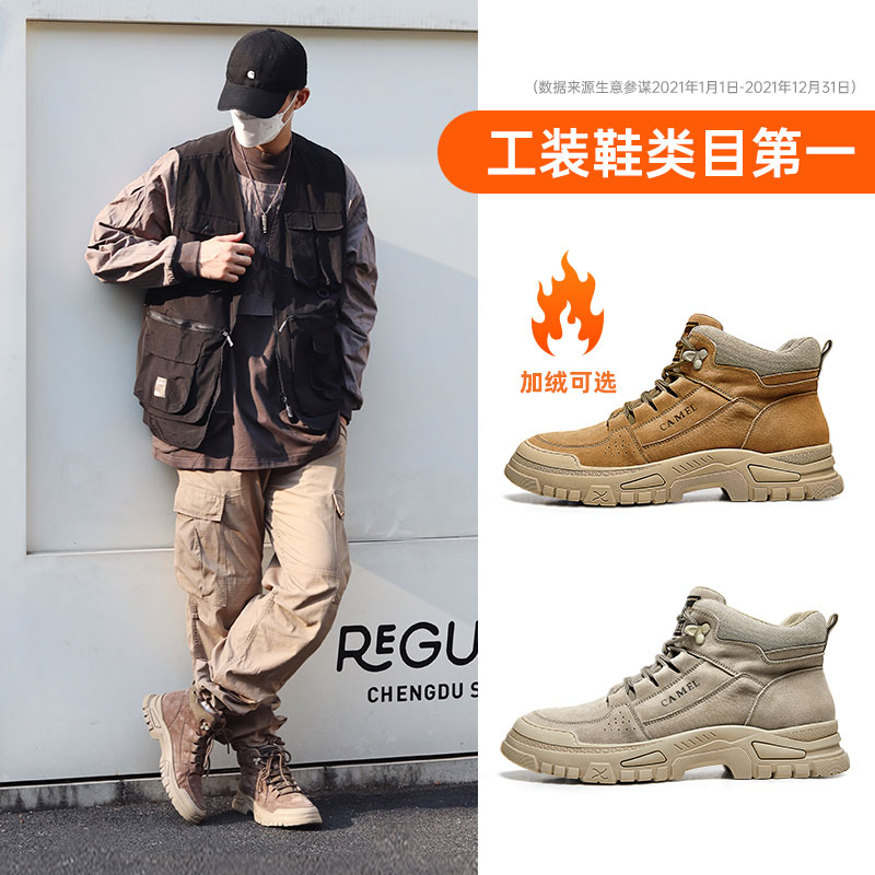 Camel men's shoes plus velvet cotton shoes men's Martin boots winter outdoor high-top desert boots sports warm tooling boots