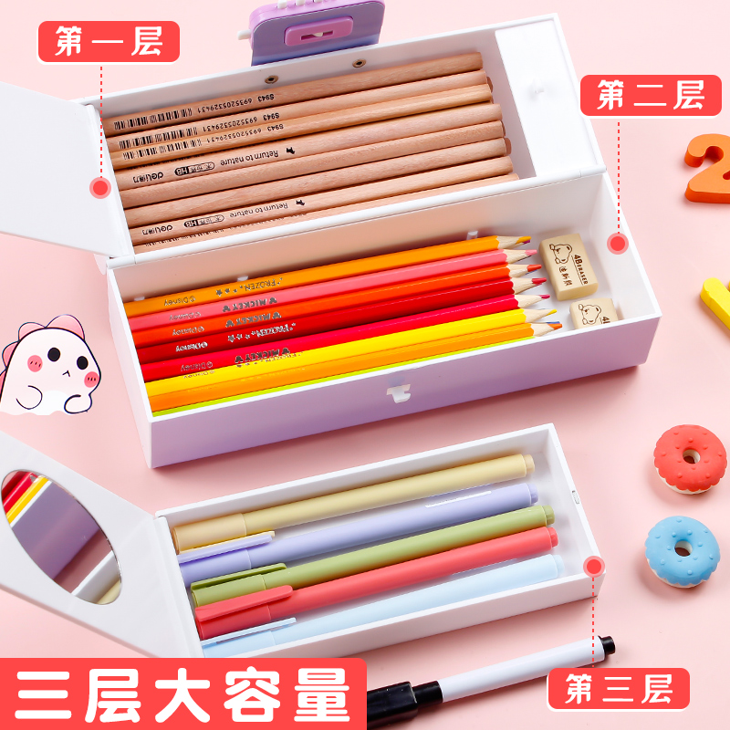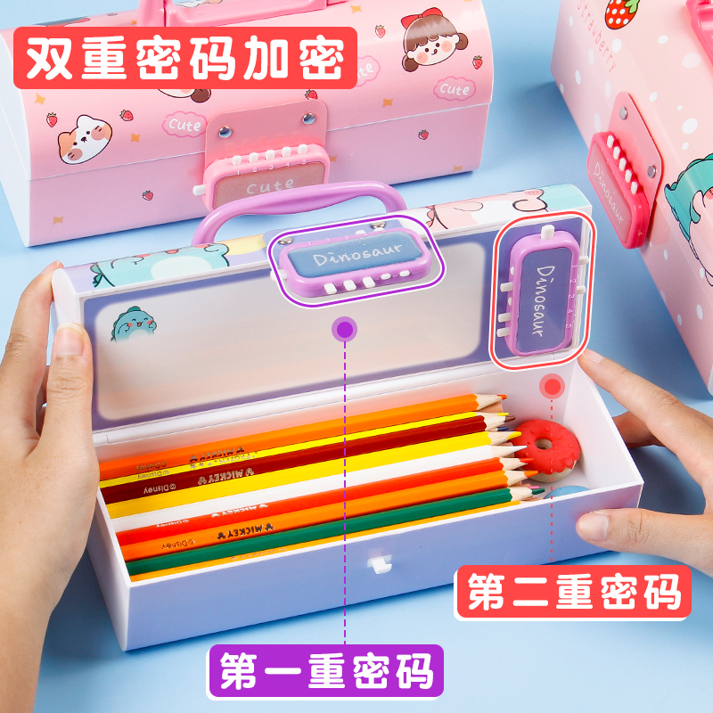 Password Pen Box Female Elementary School Children With Code Lock Cute Ins Day Ensemble Creative Mesh Red Large Capacity Brief Children Admission Multifunction First Grade Kindergarten School Overdeck Pencil Case Lead Pencil Case