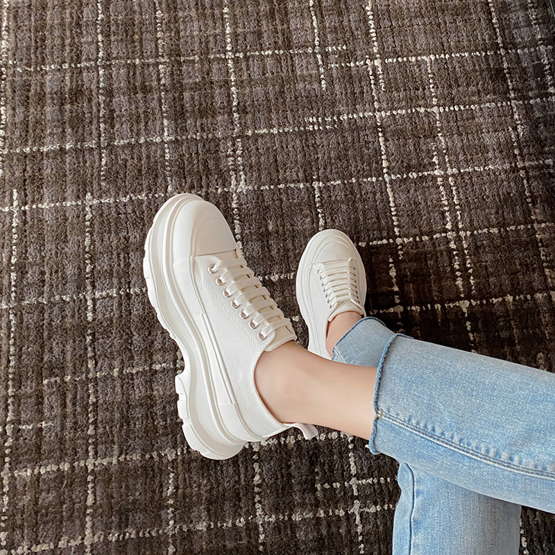 McQuinpa Canvas Shoes 2021 autumn tide Han edition of high - end shoes in thick soles white casual shoes