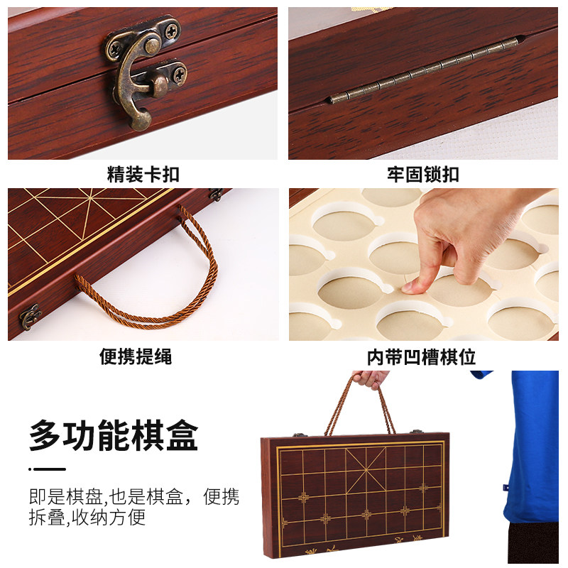 Chinese chess solid wood high-end large size adult student children suit portable wooden folding chessboard to send elders-Taobao