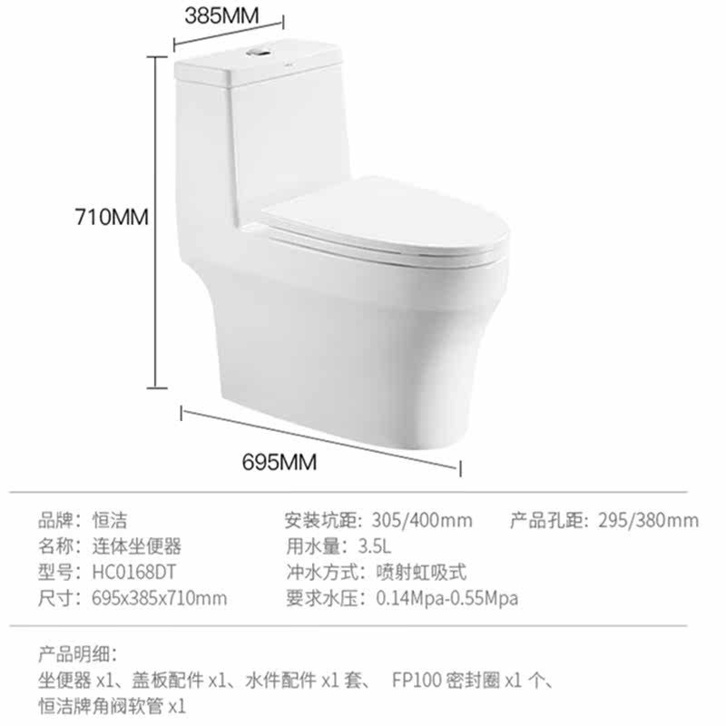 Hengjie (HEGII) toilet ultra-cyclone large flushing force siphon-type water saving silent descending cover plate toilet