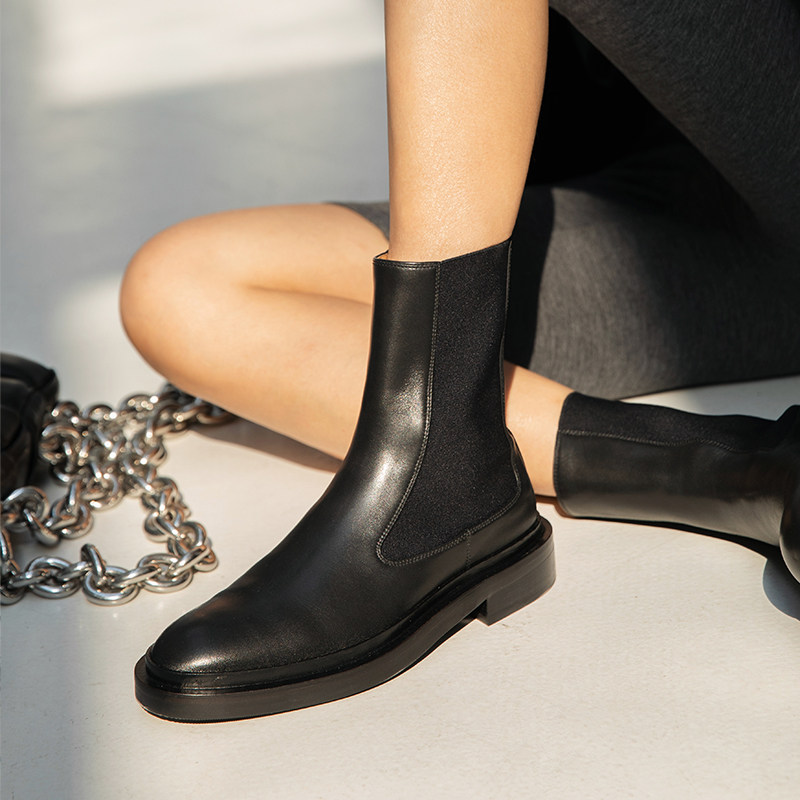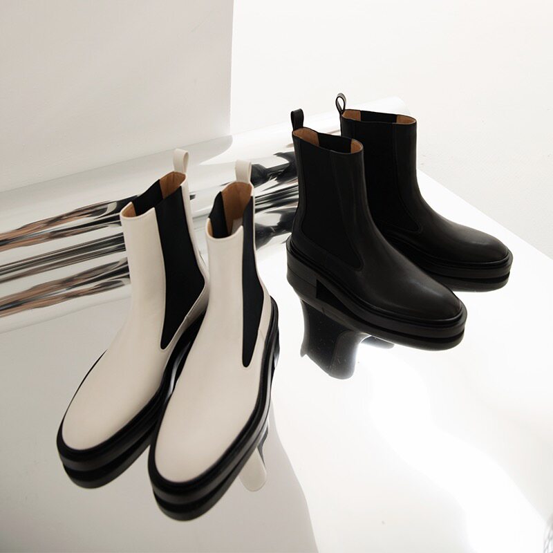 ALEXSARA2023 autumn winter new pint short boots women white low bunch flat bottom Martin boots thick bottom heightening Chelsea boots-Taobao