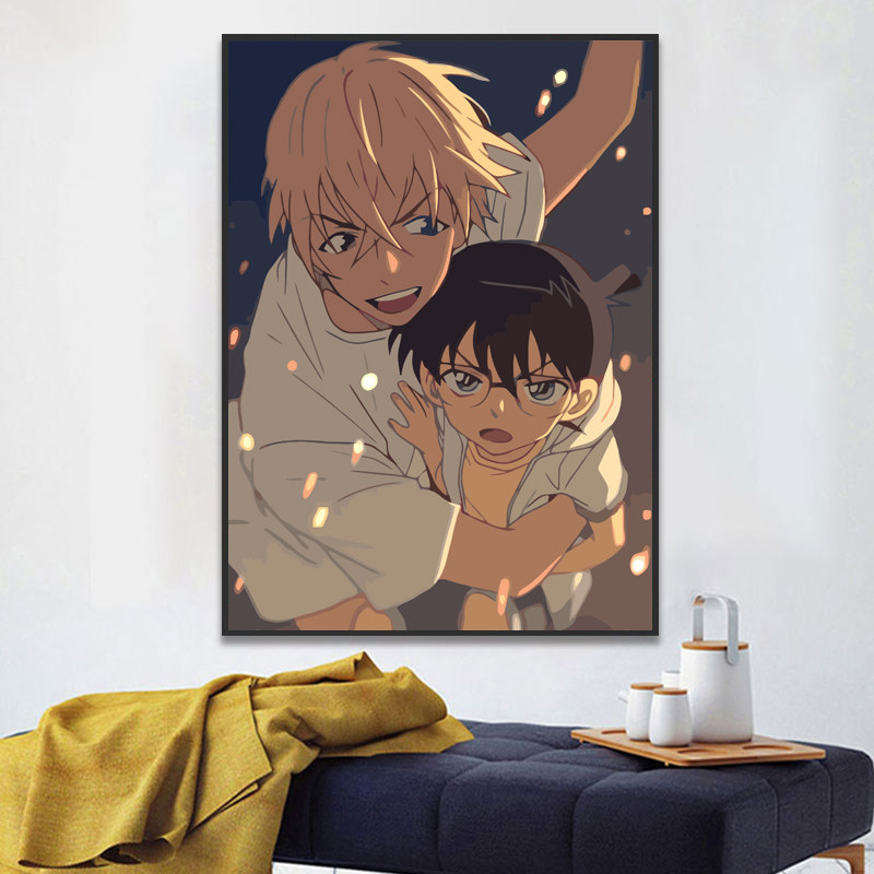 Famous Detective Cornan New Small Lan Digital Oil Painting Diy Cartoon Cartoon Crossfill Color Decompression Handmade Oil Color Painting Modern-Taobao