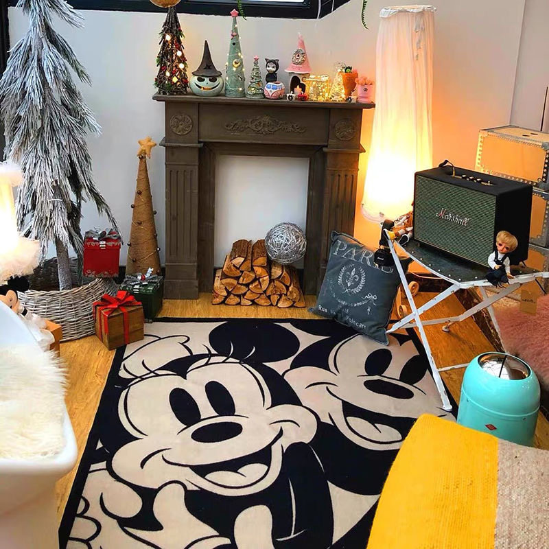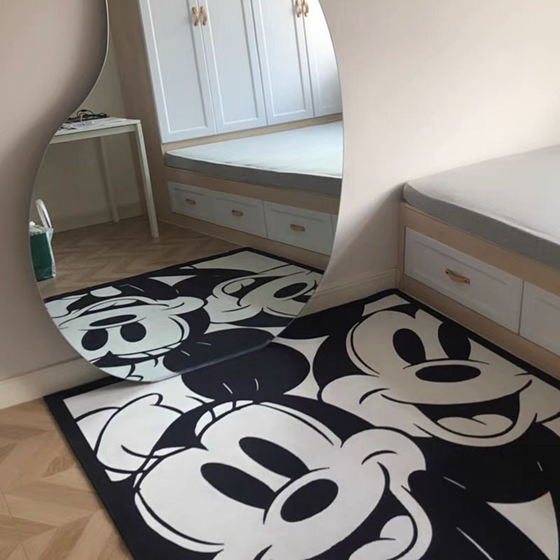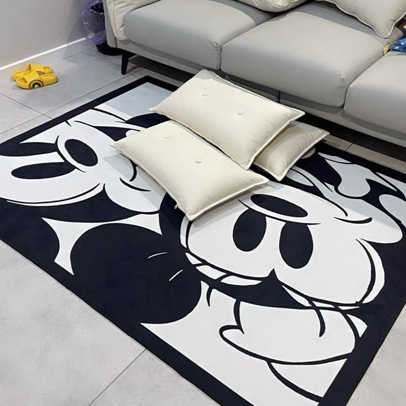 Tide brand carpet black and white Mickey Minnie commemorative animation personality bedside blanket living room bedroom home large cloakroom