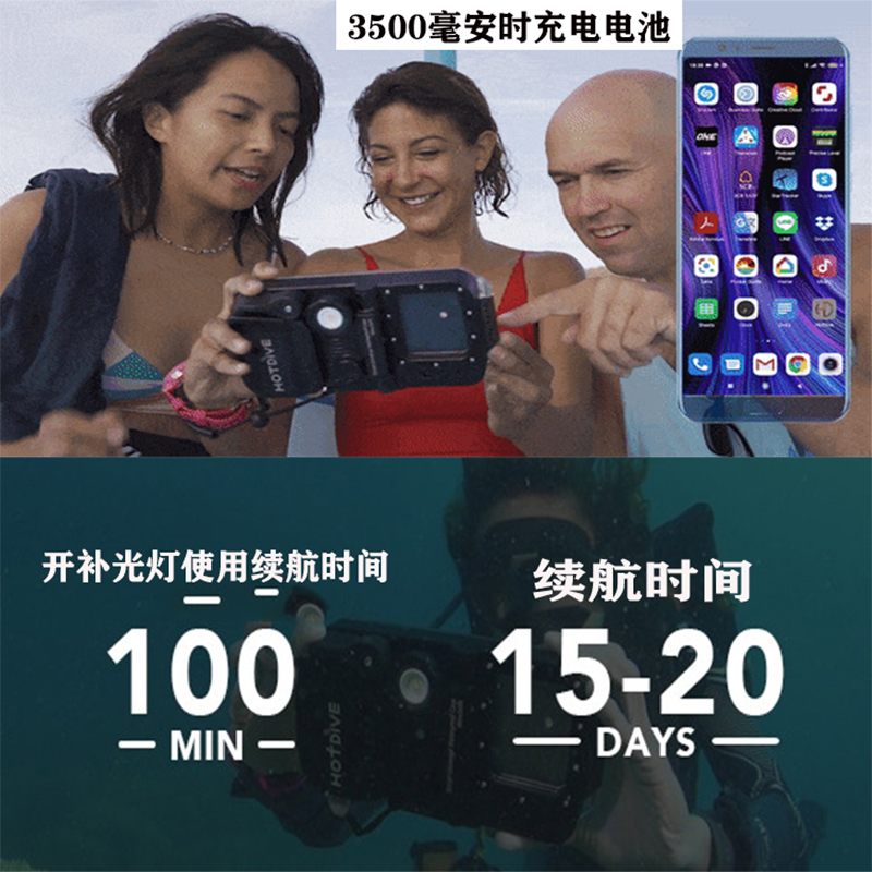HOTDIVE underwater smart diving mobile phone waterproof shell Universal Android Apple with Tonic Light Depth Gauge function