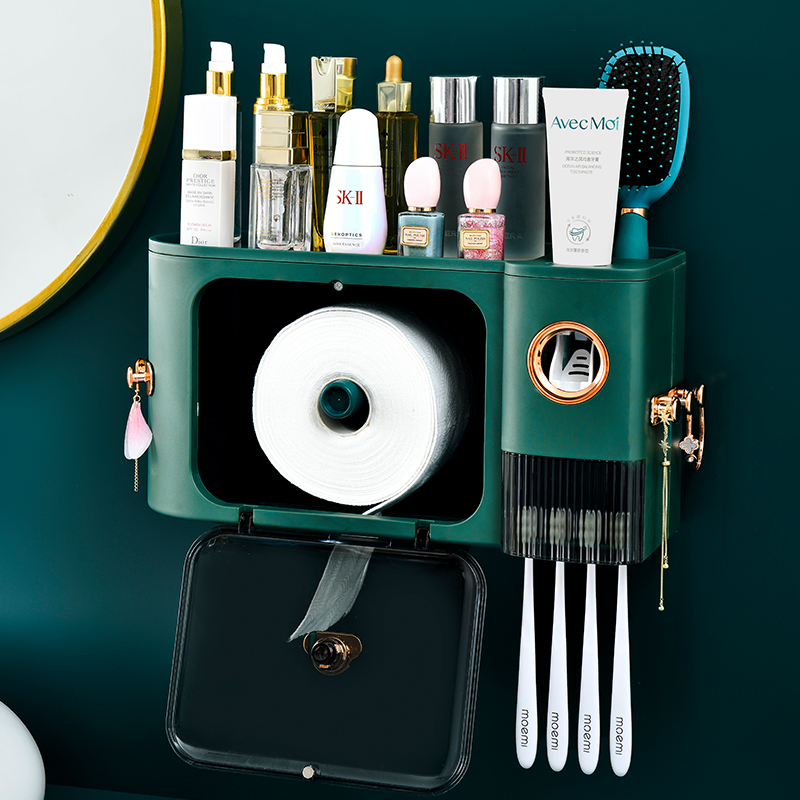 Bathroom storage shelf brushing cup mouthwash wall-mounted powder room punch-free wall-mounted tooth cylinder set toothbrush rack