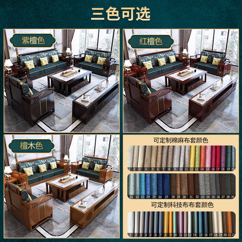 New Chinese all-solid wood sofa large and small household type combination suit Winter and summer double-use sandalwood sofa living room furniture