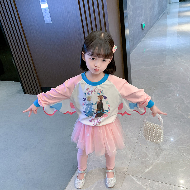 Girl's ice and snow chiarus Princess Leia suit children Anna Aisha All cotton Two sets of long sleeve blouses skirt