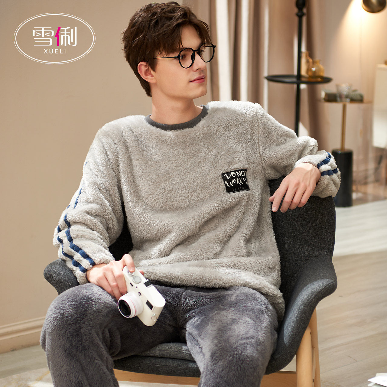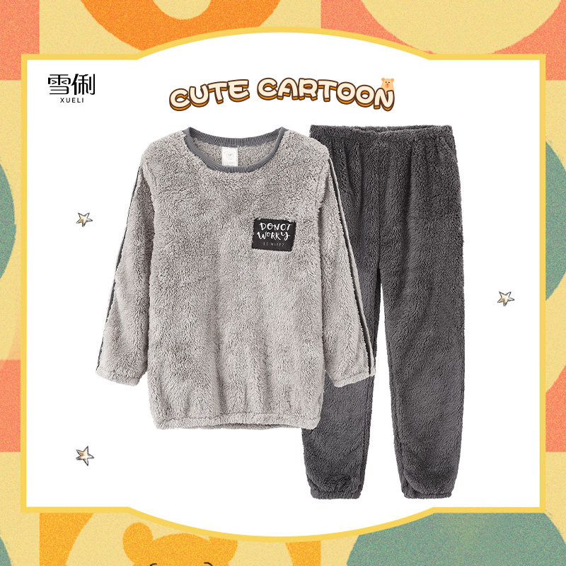 Snow Li men's pajamas winter coral velvet warm autumn and winter large size flannel home clothes men thickened plus fleece winter