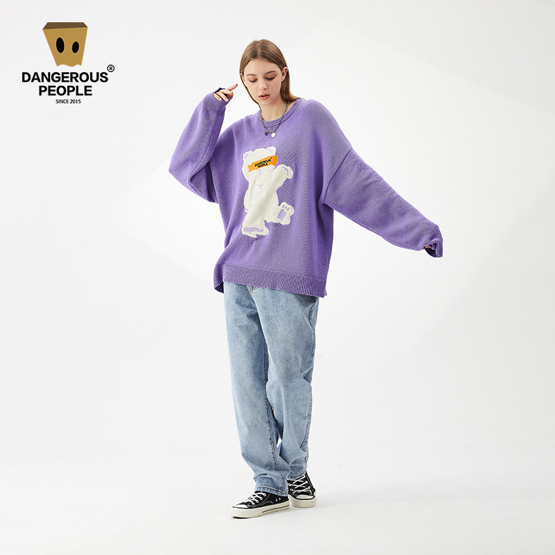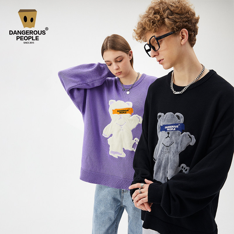 Dangerouspeople Xue Zhiqian dsp bear embroidered crew neck sweater tide brand autumn and winter couple knit shirt