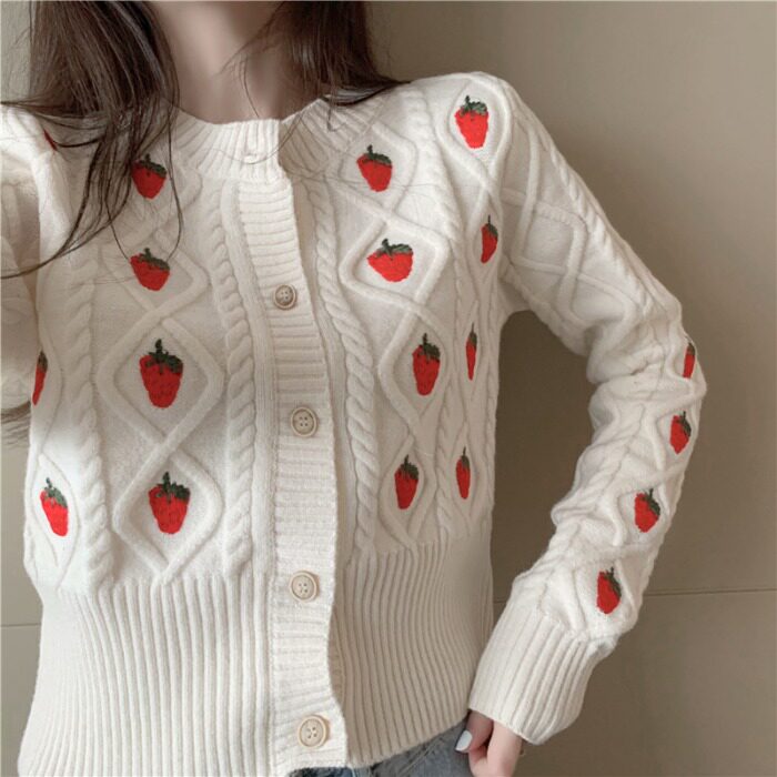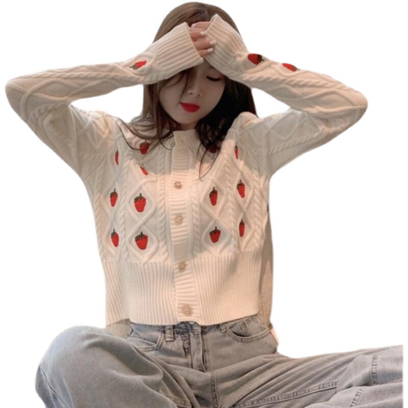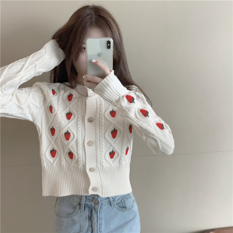 METMAR 2021 autumn and winter new sweet small fresh long-sleeved knitted cardigan jacket women's white sweater