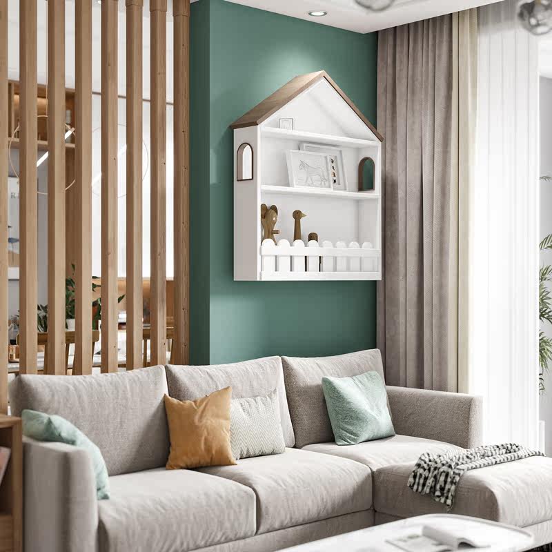 Wall shelf wall shelf wall-mounted living room bookshelf laminate iron wall hanger solid wood decorative partition