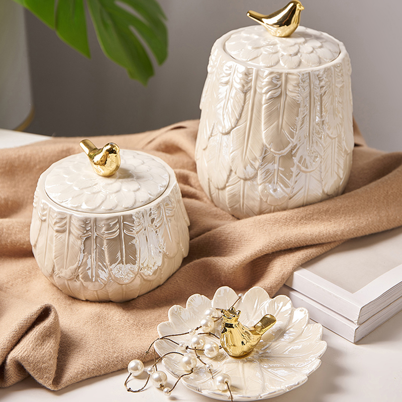 Nordic ins light and luxurious ceramic storage tank with lid containing tank Creative sugar jars Decorative European Style Candy Jar