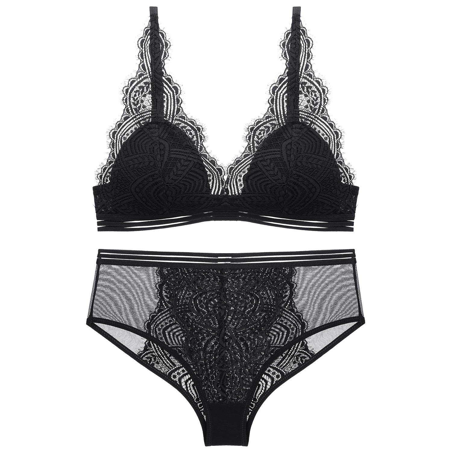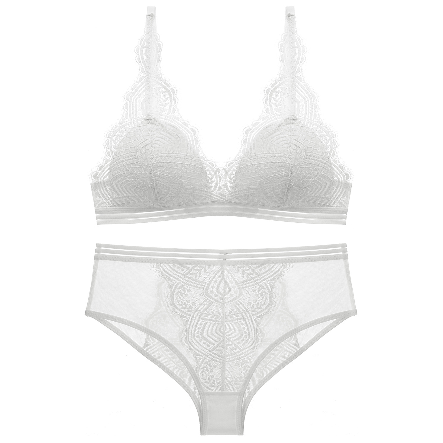 French lace thin cotton comfortable small chest gathering no steel ring sexy beautiful back breathable triangle cup underwear set women