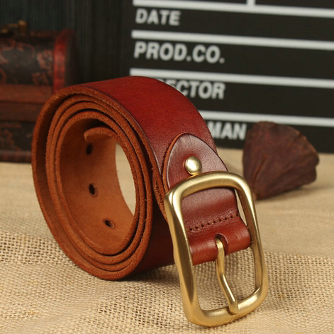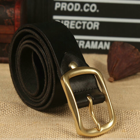 Customize Italian Cow Leather Belt Retro Head Layer Bull Leather Men Strap Pure Copper Needle Buttoned Pants Strap